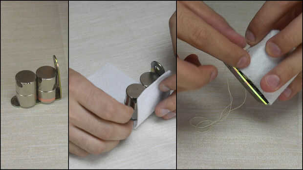 Puse algunos imanes de neodimio en el soporte y utilizar fieltro para cubrirlo.