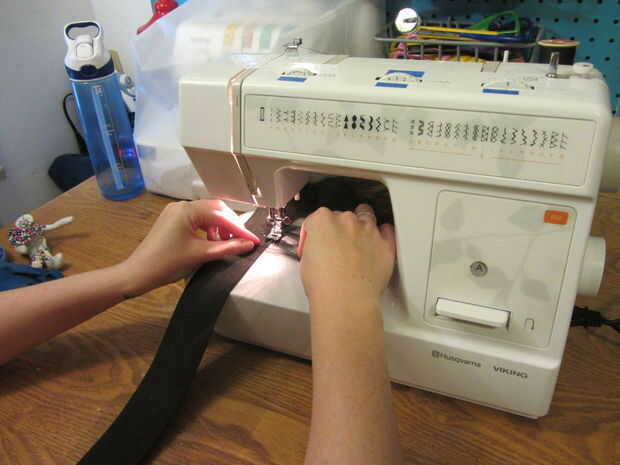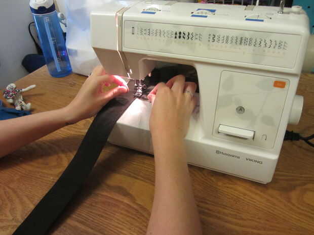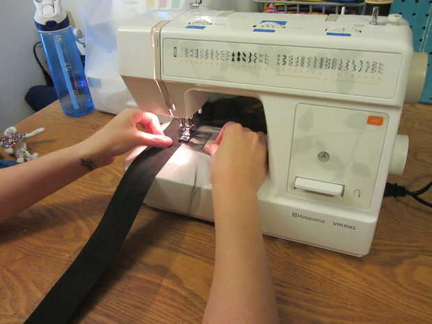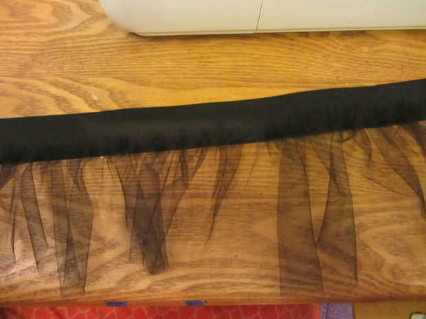 Detrás coser el Tul a la final y el borde del elástico. Se reúnen el tul como te gusta y cose como vas. Es un dolor para intentar prender el tul para el elástico, por lo que opté por este método. Es difícil de explicar, pero si vas a través de las imágenes rápidamente, crea a una especie de película de acción de la parada que se demuestra muy bien.