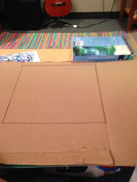 Nota: El tamaño de la cartulina (el marco) es relativo al tamaño de tu lienzo. Asegúrese de que el cartón es de por lo menos media pulgada más grande que su arte por todos lados. Por ejemplo, mi lienzo era 10 pulgadas por 10 pulgadas, por lo que era de mi cartulina 11 x 11 pulgadas...