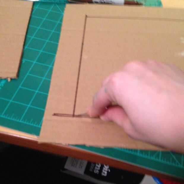 • Usando el cuchillo de X ACTO y tabla de cortar, con cuidado corte la plaza interior, creando el frente del marco.