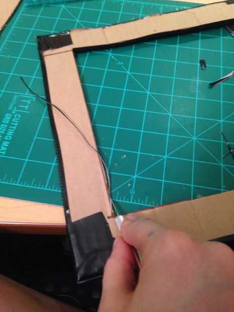 • Cortar las piezas de la cinta negra que se ajuste a toda la altura del marco. Envuelva la cinta alrededor de los bordes, o si el marco es demasiado grueso para la cinta, utilizar el cuchillo de X ACTO para limpiar los bordes.