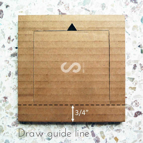 + Trazar una línea 3/4" desde el borde inferior.