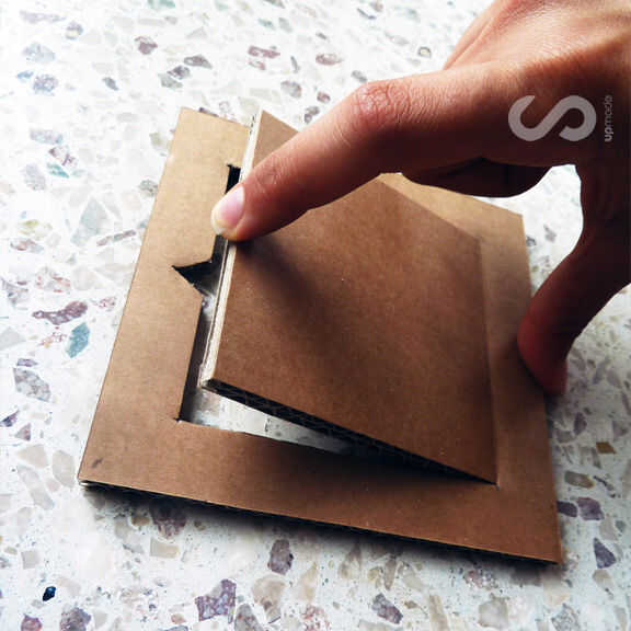 Voltea la pieza de cartulina en el lado marcado con una flecha hacia arriba.