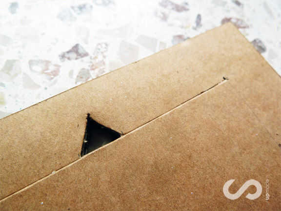El triángulo en forma de voluntad cortado sirven 2 propósitos: una percha para el marco y para abrir la espalda fácilmente para cambiar la foto. ¡ Yay!