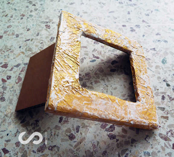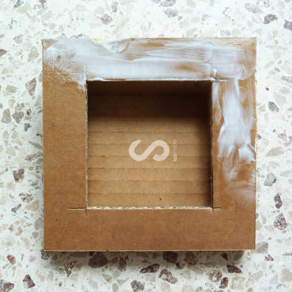 + Aplique una capa (o 2) de cola blanca que seca transparente para el marco acabado para dar el papel de fuerza más - una cantidad más abundante en los bordes y esquinas.