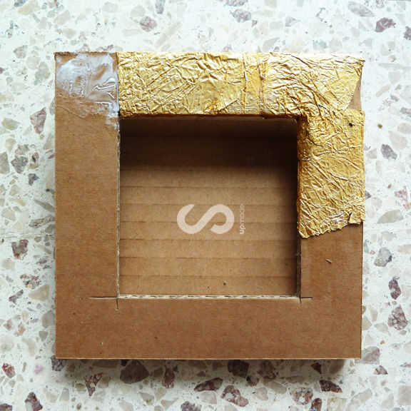 + Aplique una capa delgada de pegamento en la parte del marco que desea trabajar con y en la parte posterior de la tira de papel de aluminio.