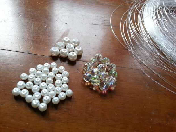 He utilizado perlas de 2 tamaños diferentes y cuentas de cristal para asegurarse de que el copo de nieve no se ve aburrido :)