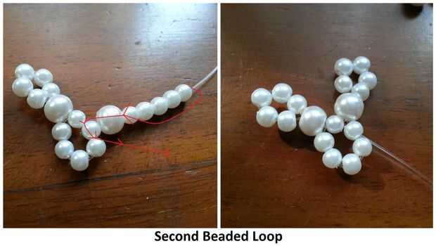 Asimismo, pase el hilo por el grano grande y la pequeña cantidad a su lado (sentido antihorario) y tire de él para formar el segundo bucle, - ver tercera foto de este paso.