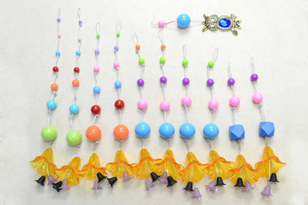 4 º, en los siguientes trabajos, sólo necesitará repetir nudos por todo lo alto para dejar granos adecuados en lugar adecuado. En mi diseño de cortina de perlas, hice cinco parejas de cuentas racimos extra y las longitudes de los cables necesarios son: 68cm, 76cm, 84cm, 92cm y 100cm.