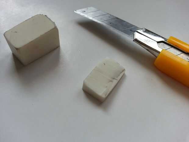 Use x-acto cuchillo para cortar la goma en pequeños trozos cuadrados.