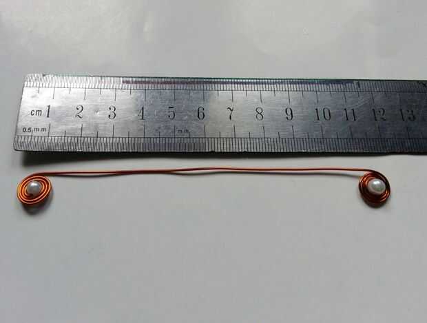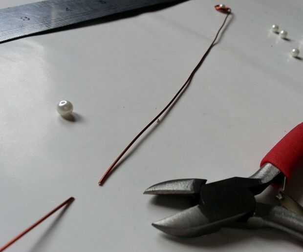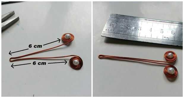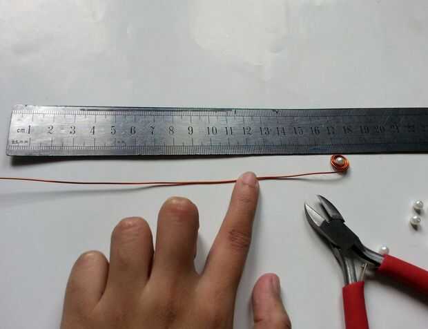 Después de hacer el primer remolino cuentas medida y dejar el cable recto (doble la longitud de su tamaño del anillo + 4-5 cm de remolinos), cortan el cable desde el paquete.