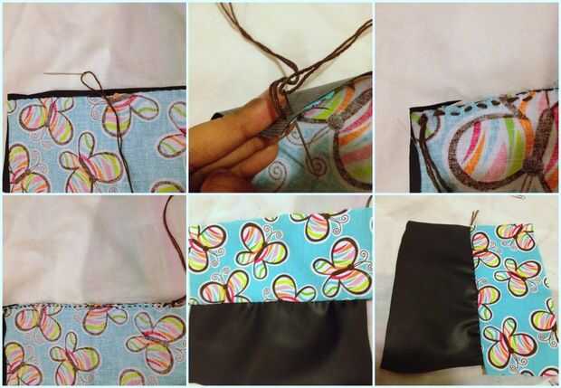 Cuero y un pedazo de tela de acento, colocarlos encarando los derechos de. Ahora empezar a coser en el revés con hilo y aguja con margen de costura de 1/4 de pulgada.