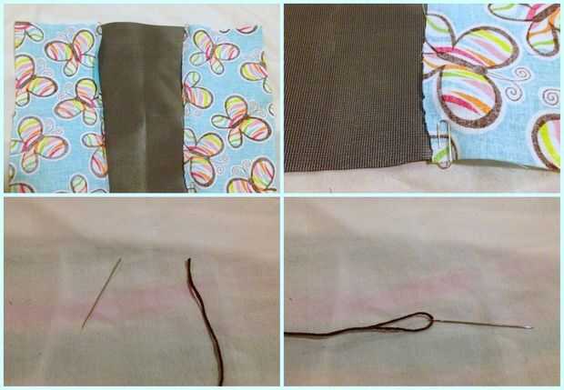 Una vez que usted hace a un lado. Tome otro trozo de tela. Pin con otro lado de la piel y empezar la costura en el lado equivocado.