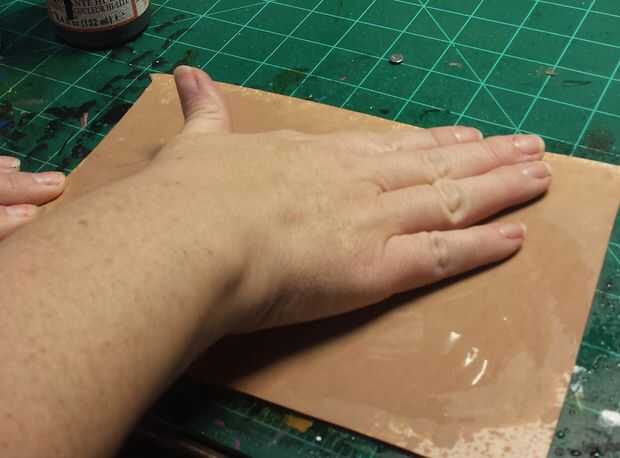 Primero se debe humedecer el cuero para preparar herramientas. una vez que la superficie de la piel ha aligerado hacia arriba y se siente frío pero seco está listo.