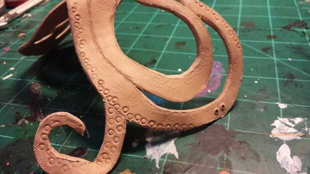 Forma cortado y fileteado diseño en cuero. Entonces perfora orificios para sutura bolsaPaso 1: Diseño de morirYo pintando un tinte a base de agua para dar mi tentáculo algunos color y dimensión.Paso 2: Morir bolsaHabía teñido de marrón muy oscuro, as
