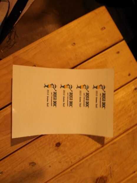 Determinar el tamaño y la colocación de su logotipo. El mio es 1 X 2. No podía ir más grande debido a la curvatura de la pelota. Siga las instrucciones incluidas con el kit de la etiqueta. Su bastante directo, imprimir, sobretodo de sellador (incluido con el kit) del aerosol y dejar secar totalmente.