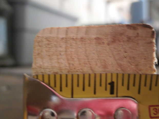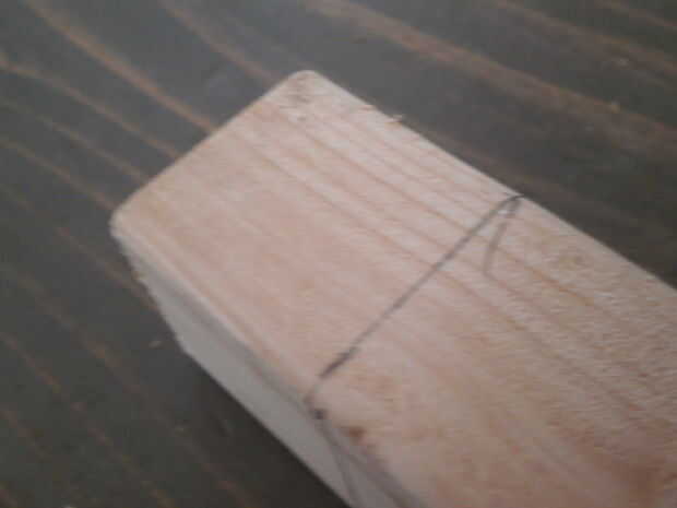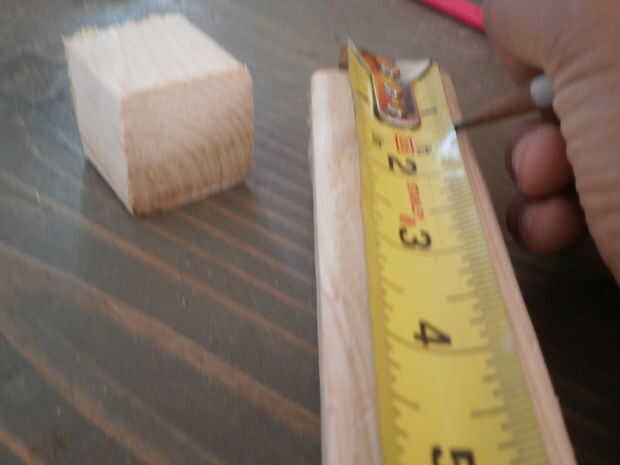 Mida la madera y márquelo. En este caso el alto y el ancho de la madera era 1 1/4 pulgadas... Así que medí a 1 1/4 pulgadas de largo en el post.