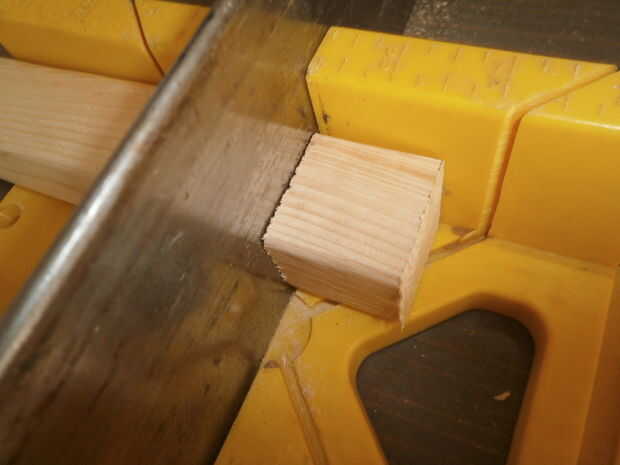 Ahora use una caja de ingletes para cortar una línea estrecha. Pero debe compensar la kirf de la hoja de corte al lado de la línea que dibujó en la madera.
