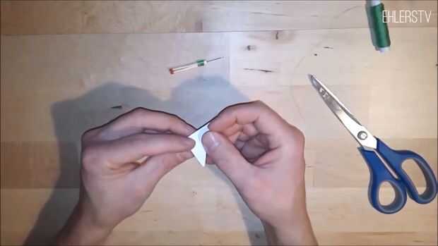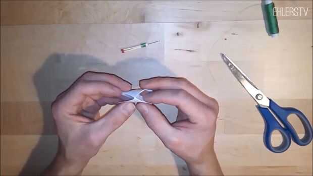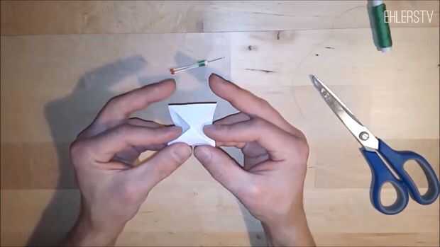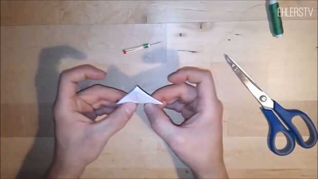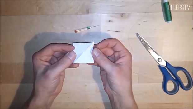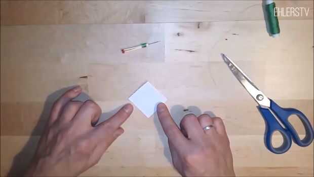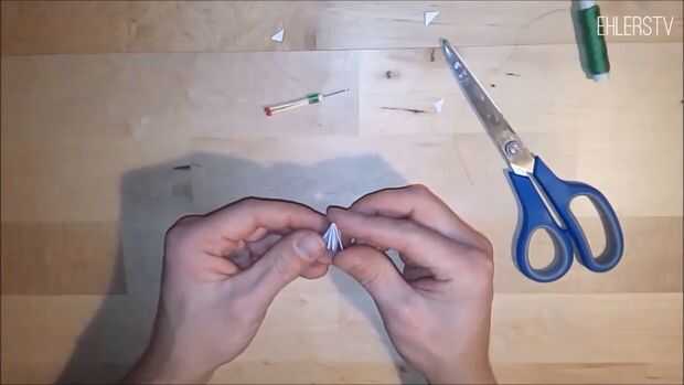 Tomar el papel de (5 x 5 cm) y dóblalo como se puede ver en la foto. Es fácil de hacer, pero no es fácil de explicar sólo por escrito, lo siento ;-)