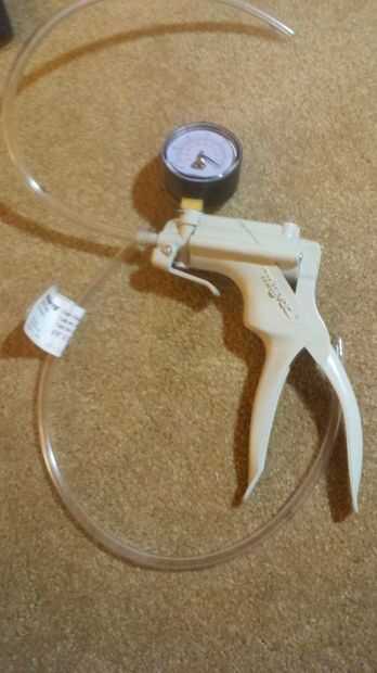 Una vez que haya terminado, usted puede tomar. Lo que más me gusta de esta bomba de purga de freno es que tiene una válvula de alivio de presión y manómetro.