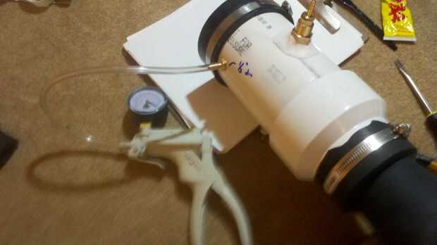 - Dale unas cuantas bombas y ver si mantiene el vacío. Usted puede notar la goma sello comenzará a cóncavo en el pvc, pero no te preocupes Esto creará un sello más apretado alrededor de su antebrazo.