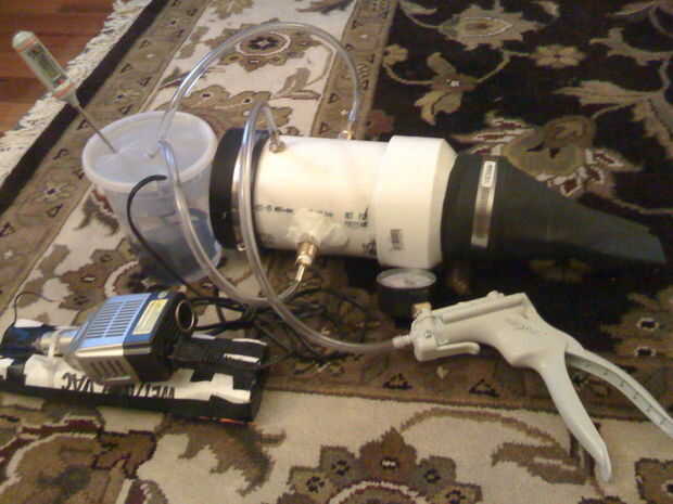 Cuando conectes la bomba de agua, asegúrese de que el agua va está pasando por la parte inferior porque no desea que todo el aire en la barra de latón. Revise las notas en las fotos para hacerse la idea.
