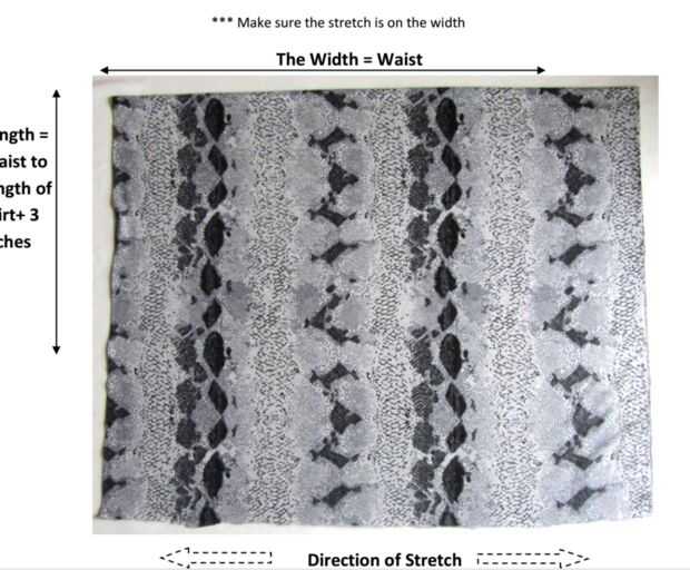 Cortar un rectángulo con las dimensiones. Asegúrese de que la tela se extiende horizontalmente (ver imagen)