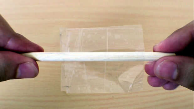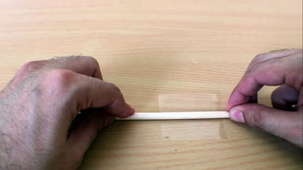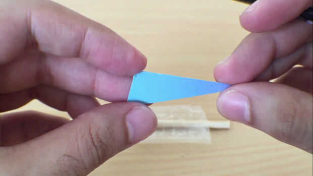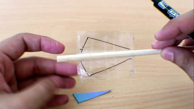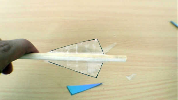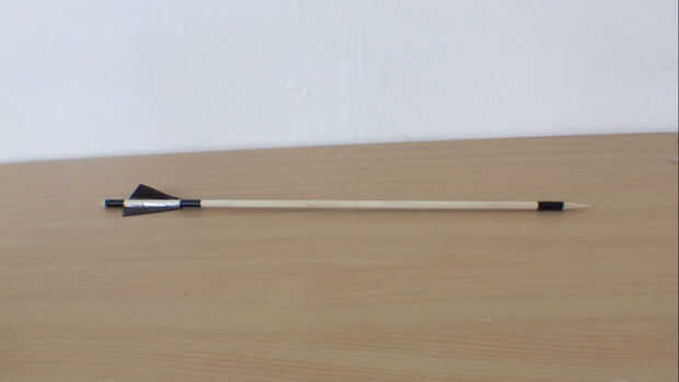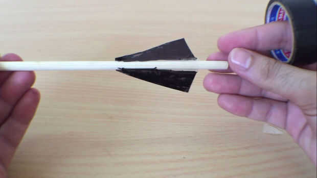 1) Coloque un trozo de cinta de embalaje en mesa y colocar la flecha en él.
