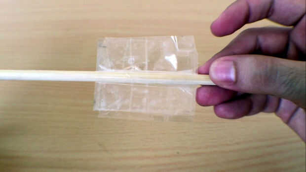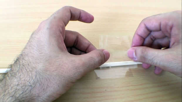 2) pegar un segundo pedazo de cinta de eso como en las fotos para emparedado entre el pincho.