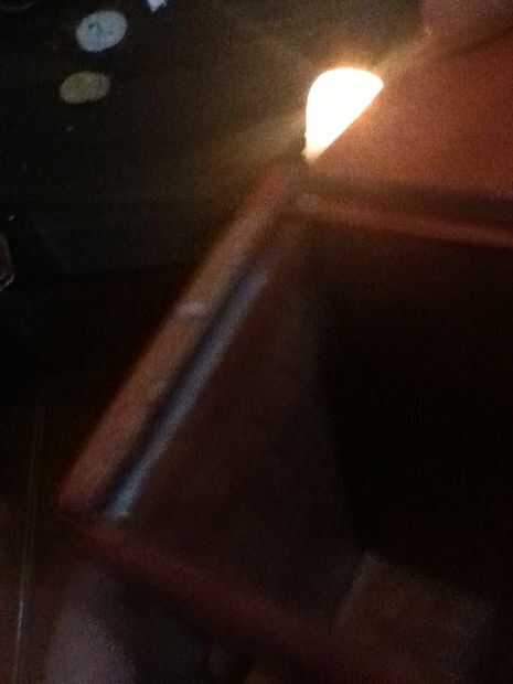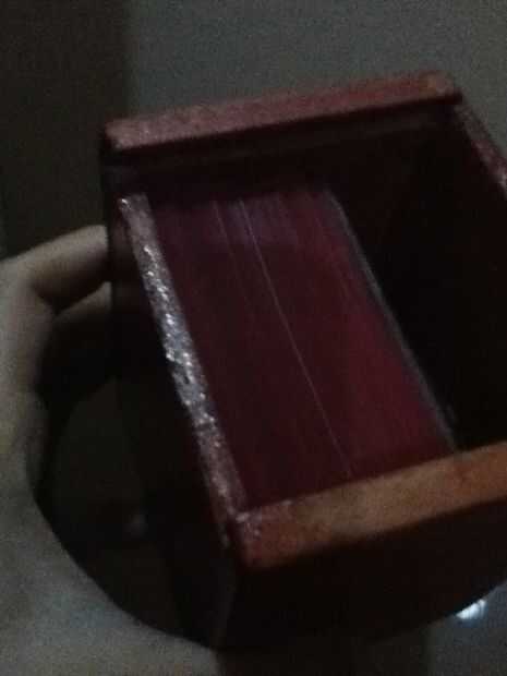 La pintura a la izquierda demasiado apretado para la tapa se deslice a través de las ranuras. Así que teniendo algunos candlewax caliente y líquido, vierten sobre las ranuras, y ayudaremos a deslizar a través de todo. Acabo de enterar después de que le he dado el regalo a mi novio, y él fue el que añadió el truco de candlewax! Genial!
