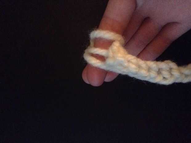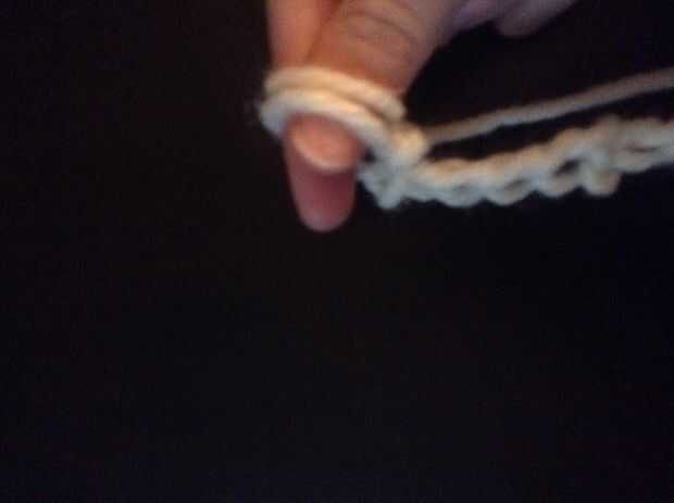 Tire el hilo de trabajo sobre el dedo. Luego atraparla y tire de ella a través de