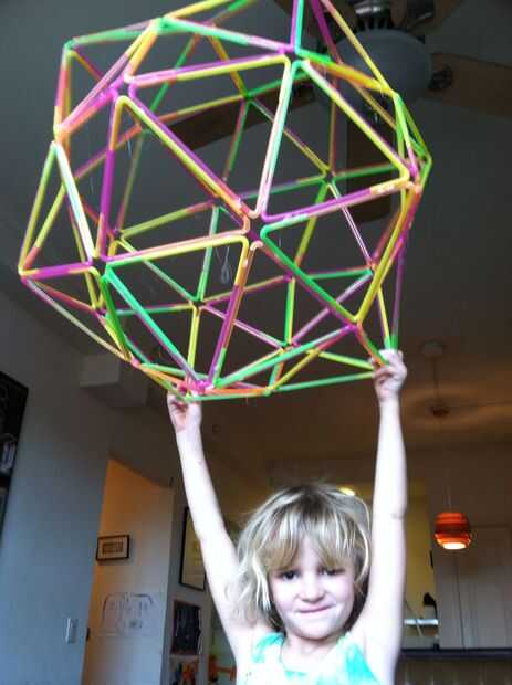 Para hacer un triángulo equilátero de paja flexible, unirlos junto corta final para tiempo extremo, usando las partes flexibles como las esquinas. La esquina de un triángulo se llama el vértice.