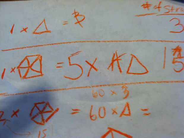 Que ya habíamos usado 60 pajillas y que necesitábamos para asegurarse de que suficiente para terminar el sólido, por lo tanto debemos comprar tenía que averiguar cuántos más para comprar. Esto condujo a la búsqueda de la diferencia entre 180 y 60, que fue difícil porque nuestro matemático era sólo 6 años de edad. Finalmente descubrimos que íbamos a necesitar 120 pajas más.
