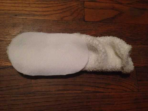 2. Trazar el contorno del calcetín en un pedazo de tela y cortarlo hacia fuera.