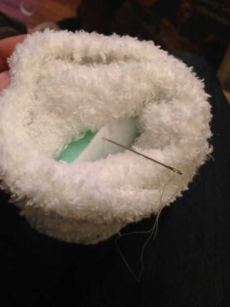 3. Coser a la tela a lo largo de los bordes de la media, dejando una abertura en la parte posterior para relleno.