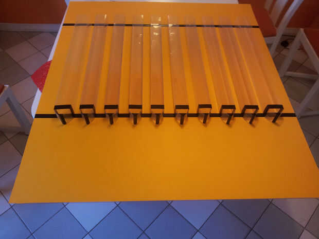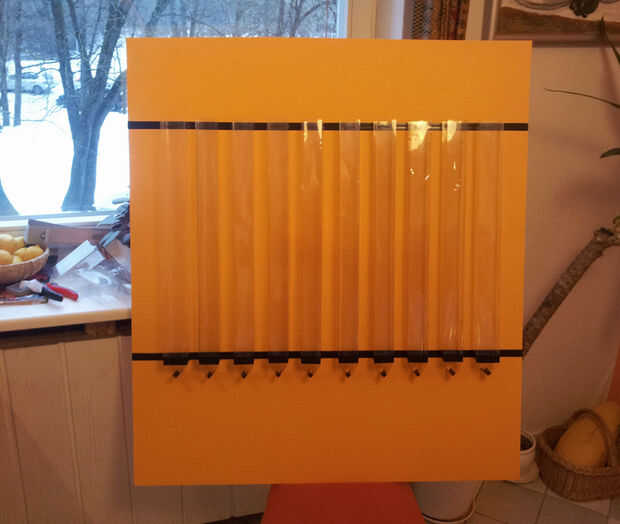 3. tomar los tubos, cortar de igual tamaño, realizar incisión en cada una de ellas. Usted debe conseguir al final del tubo de tal, últimos 8cm del mismo carece de 2 lados opuestos (ver foto)