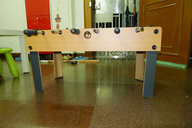 esta mesa de ping-pong DIY fácil está lista para usar en cuestión de minutos. Cuesta menos de $100 y las piernas son algo que cada propietario debe de todos modos!Nota: Esto no es una tabla de regulación. Esta tabla mide 4' x 8' frente a un cuadro de