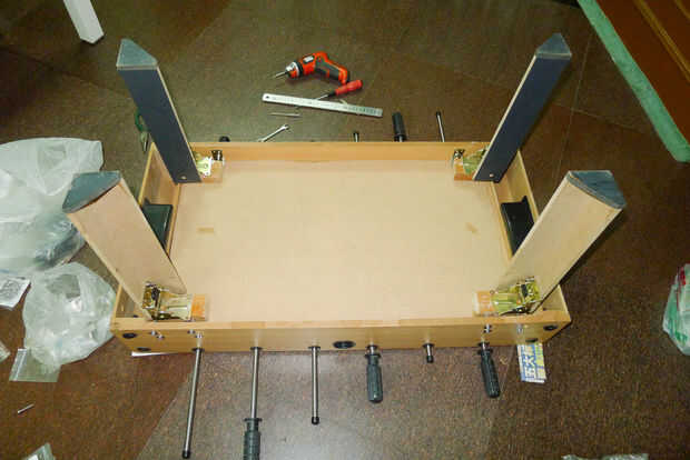 esta mesa de ping-pong DIY fácil está lista para usar en cuestión de minutos. Cuesta menos de $100 y las piernas son algo que cada propietario debe de todos modos!Nota: Esto no es una tabla de regulación. Esta tabla mide 4' x 8' frente a un cuadro de
