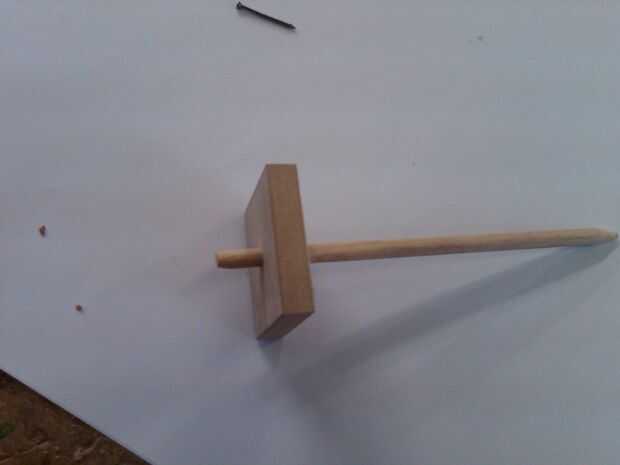 Introduciendo el eje en el espiral toma un poco de esfuerzo - el agujero en el verticilo es 5.5mm y el eje es de 6mm, por lo que será un ajuste apretado. Me pareció más fácil torcer en su posición, con alrededor de 20mm sobre el volante.