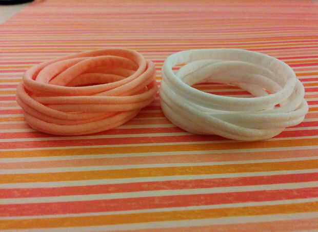 Yo quería hacer mi propia lazos elásticos para el cabello porque me gusta usarlos en mi muñeca cuando no están en mi pelo. Más lazos para el cabello no son muy cómodos en su muñeca por los corchetes del metal o la línea de pegamento que sostiene que los lazos juntos son scratchy. También, lazos para el cabello generalmente son demasiado pequeños para estar cómodo en una muñeca adulta.