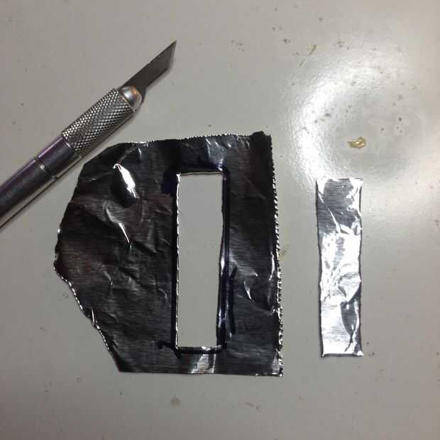 Utilice un cuchillo del exacto para cortar alrededor de los bordes de la cinta, por lo que se trata de las mismas dimensiones que el papel de aluminio.