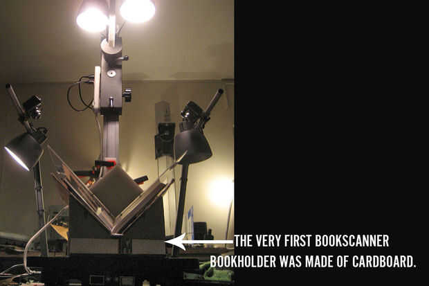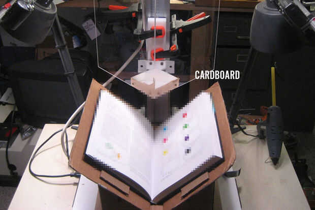 Hay muchas maneras que usted puede hacer el titular del libro. De hecho, mi primer sostenedor del libro fue hecho enteramente de cartón, y funcionó lo suficientemente bien como para digitalizar mi primer libro. Después de pensar sobre esto, opté por usar una caja de ingletes hecha de antemano como principio, porque es muy barato ($6) en el puerto de carga, y porque también puede ser utilizado para producir el analizador.