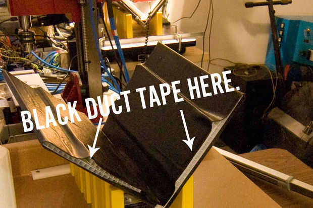 Simplemente de aerosol pegamento toda la parte trasera de la pieza y cuelgue suavemente sobre lo VST. Entonces, lo trabajando rápidamente antes de la cola seca, ajustarse a la superficie del plástico. Utilizamos cinta adhesiva negra para ocultar los bordes al descubierto de lo VST.