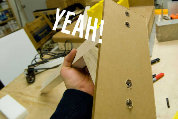 MiniStep 2. Montar el plástico o el MDF en la parte posterior. Mida, marque y perfore orificios piloto. Avellanar tornillos y atornillar juntos.