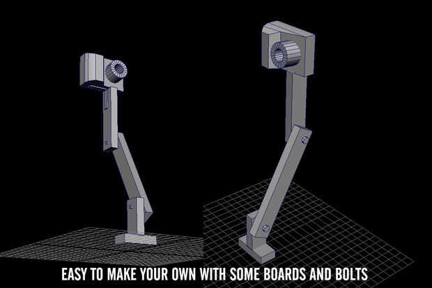 También se podría hacer una cámara de brazo con un soporte parecido a estas armas ya existentes. He hecho una pequeña maqueta en Maya. Con nada más que un tablero, algunos soportes y algunas tuercas de mariposa, usted puede tener su propia articulación del brazo. En realidad, este sistema funcionaría incluso mejor que el que he hecho, y probablemente algo así como lo hará para un explorador del futuro libro.