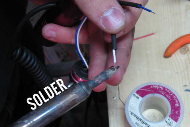 De la soldadura de los cables del interruptor a los hilos del cable de la bobina. El orden no es importante.