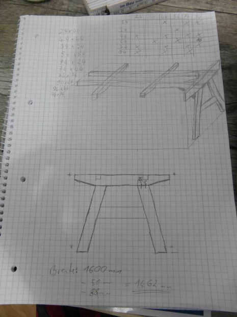 Esta sola hoja A4 es realmente el único dibujo que hice... las dimensiones que empecé con fueron las dimensiones deseadas de la tabla como altura, anchura y profundidad. Todo lo demás, me di cuenta cuando fui a lo largo de...