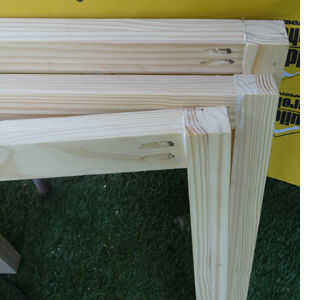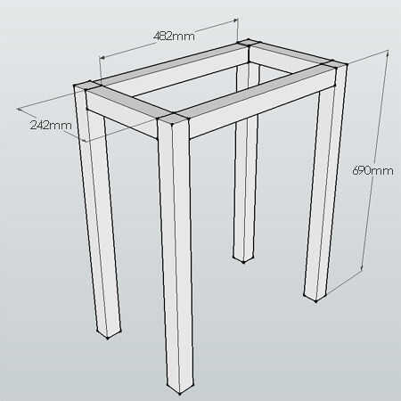 4. utilizando tornillos 4 x 45 mm de vástago liso, conecte el lado, marcos y en la parte superior de las piernas.