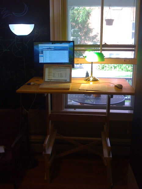 Inmediatamente al día siguiente hice soportes para mi dos escritorios no permanente, para que pudiera usarlos como mesas de cinta si es necesario.