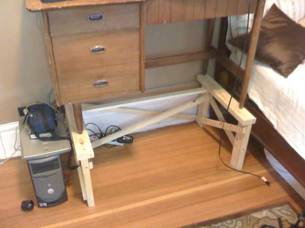 o atornillar para arriba en las patas del escritorio a través de la plataforma.